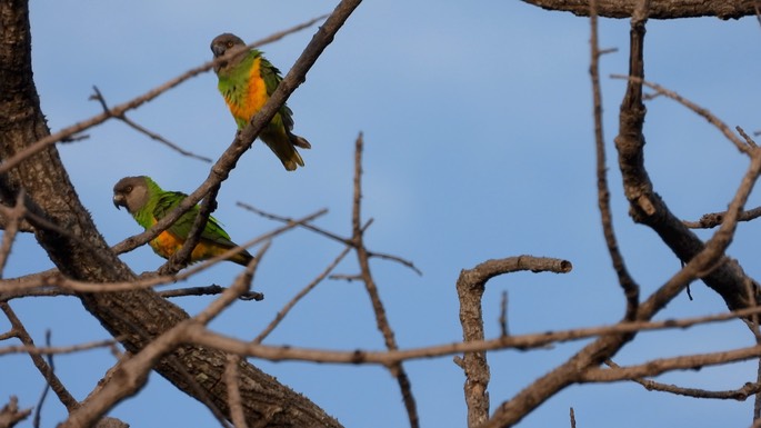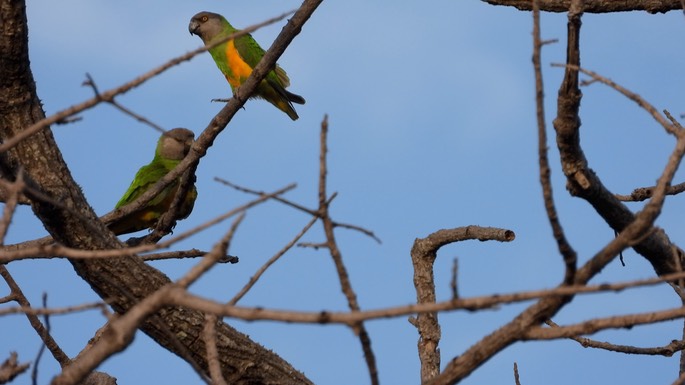 There are two subspecies of the Senegal Parrot. This subspecies, the nominate form, is found from Senegambia in the west to Guinea-Bissau, southern Niger, northern Cameroon, and southwestern Chad in the east. The video framegrabs shown here are from recordings made in Senegal during December 2018 - video link.