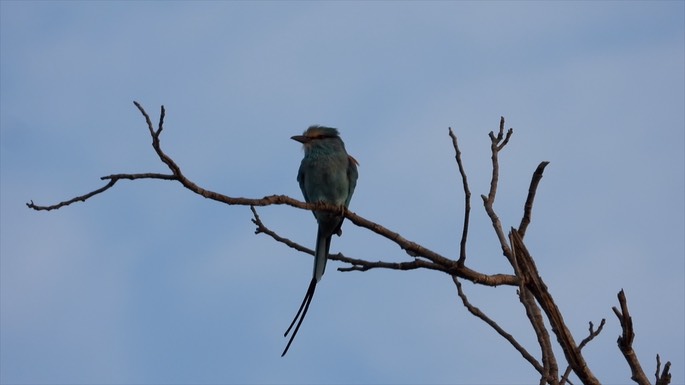 The Abyssinian Roller is found in the Sahel of Africa, the tropical zone south of the Sahara. It is also found on parts of the Arabian Peninsula. Its synonym was a change in latin usage, originally described as Coracias abyssinica. These framegrabs are from video recorded in Senegal during December 2018 - video link.