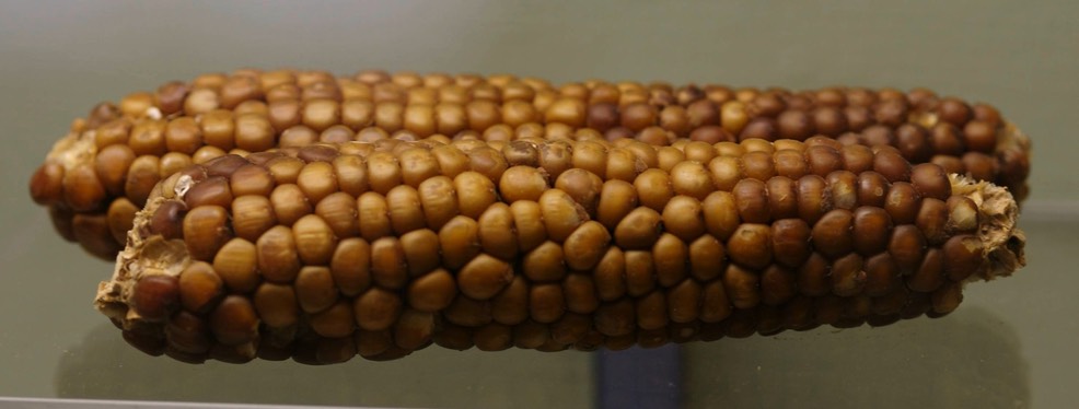 Specimens of corn from eight hundred years ago (see above photo taken at Mesa Verde NP, Colorado, USA) clearly demonstrate the high level of domestication which had occurred by that time. Domestication of corn, followed that of squash and started about 6,000 years ago. Most exciting for me, however, was the evolving evidence that maize may have been domesticated from a subspecies of teosinte (a wild grass) instead of from a hybrid between teosinte and a species of Tripsacum. Seems the world has not stood still since my senior seminars.