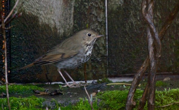 In 2008 I was anticipating our move to New Mexico and began to think seriously about the bird species I would be giving up as frequent guests. Golden-crowned Sparrows and Varied Thrushes in the backyard are not likely to occur in New Mexico - I knew that I would miss that. It turned out, however, that Hermit Thrush would be an occasional visitor to our yard in New Mexico as well. But as I noted at the time: the Hermit Thrush is found in both Oregon and New Mexico. And, like the Junco we will be seeing a different race - the Pacific population (shown right in a photo from January 4, 2008) vs birds of the Interior West population.